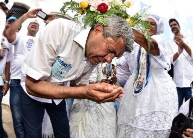 Estreantes na Lavagem do Bonfim, o prefeito de Salvador, Bruno Reis (União Brasil), e o governador...